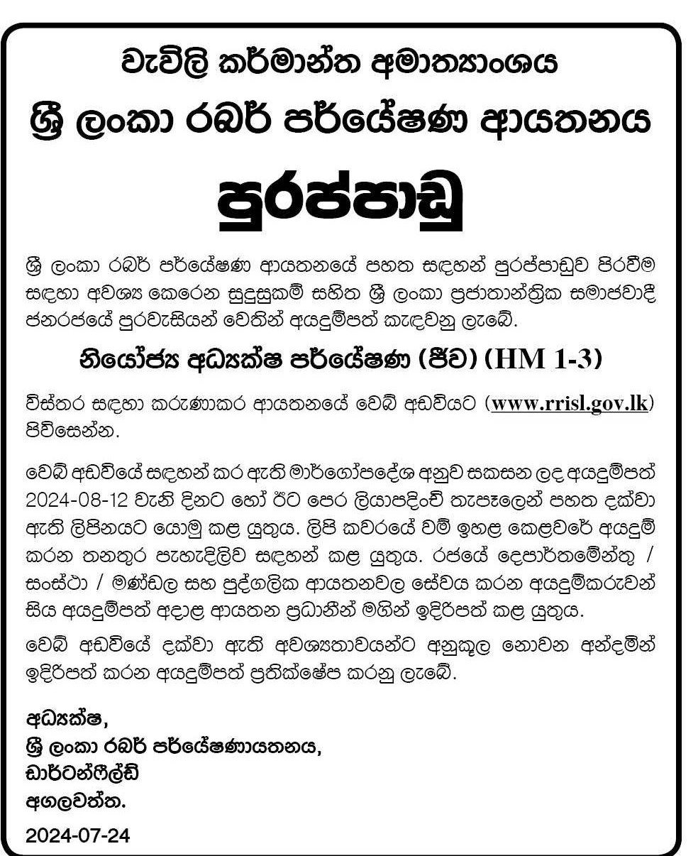 Deputy Director Research - Rubber Research Institute of Sri Lanka