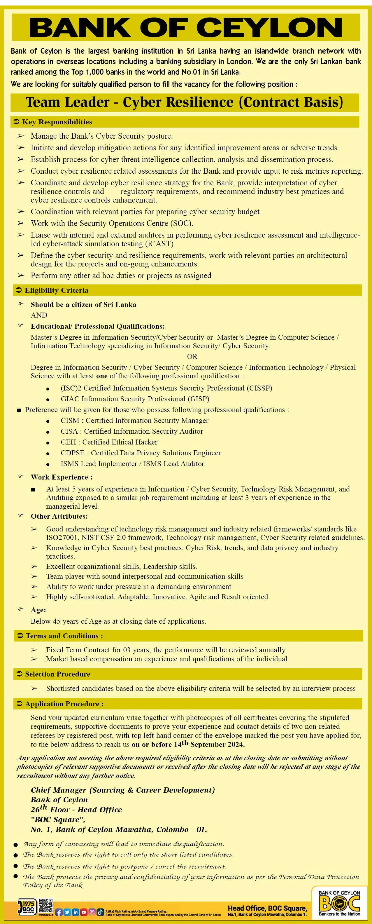Team Leader - Bank of Ceylon