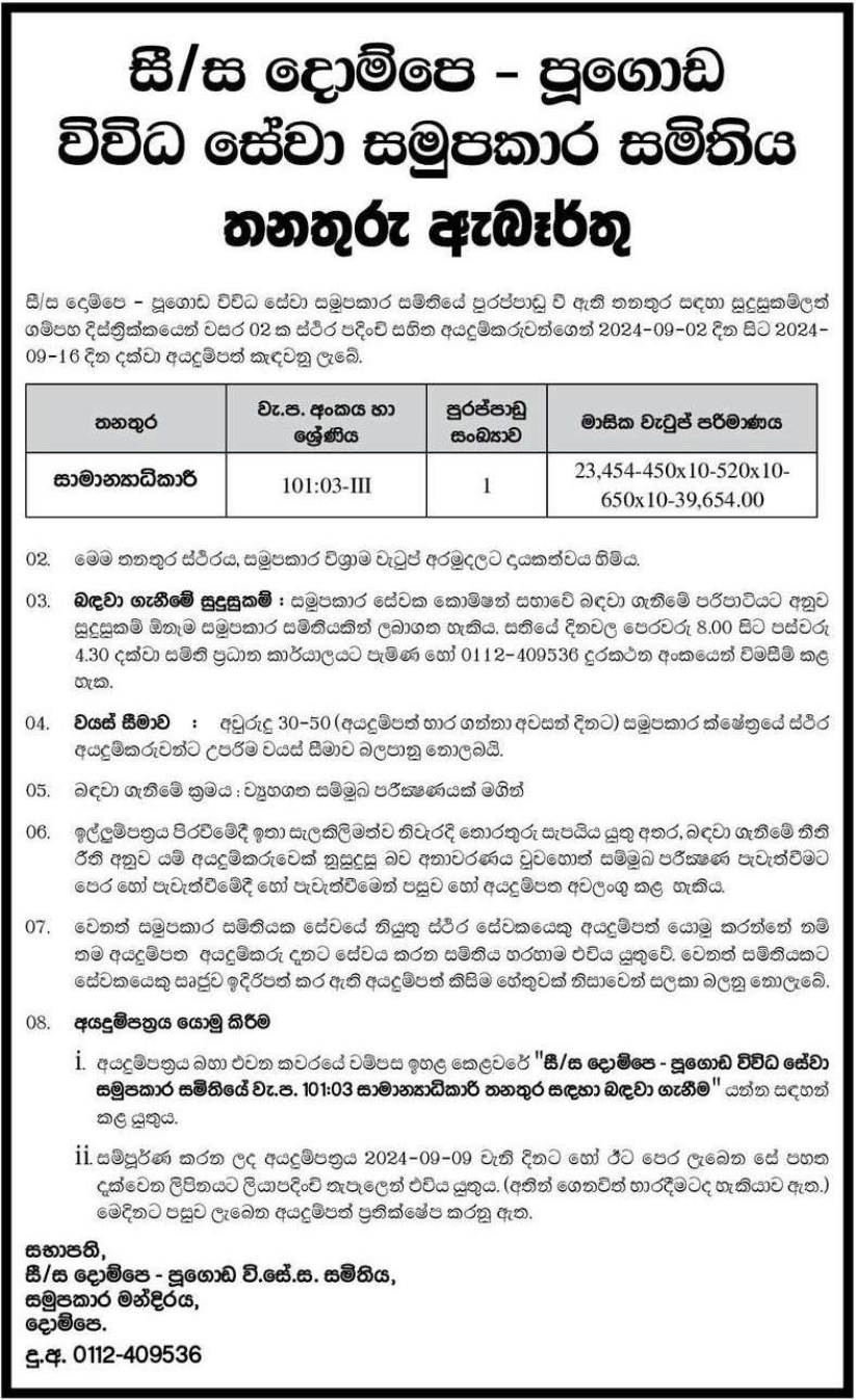 General Manager - Dompe Pugoda Multi Purpose Cooperative Society Ltd