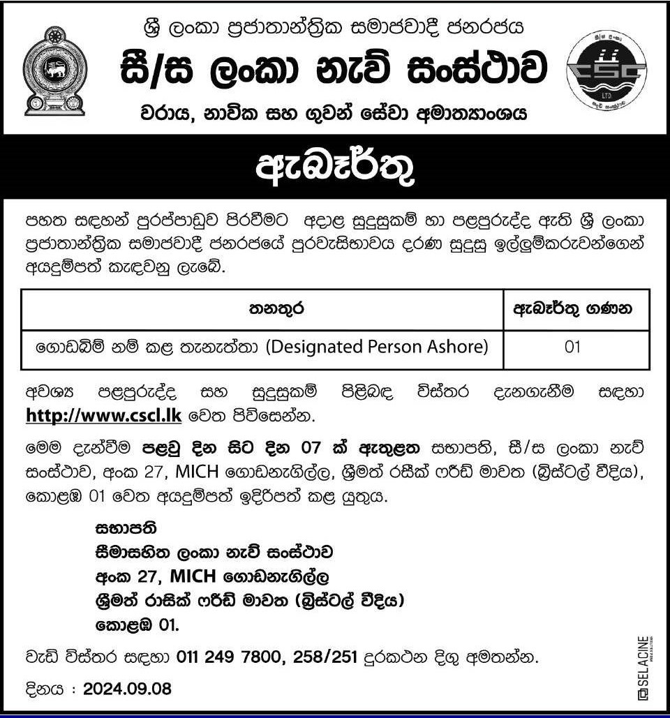 Designated Person Ashore - Ceylon Shipping Corporation Ltd