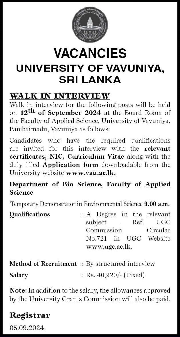 Demonstrator - University of Vavuniya