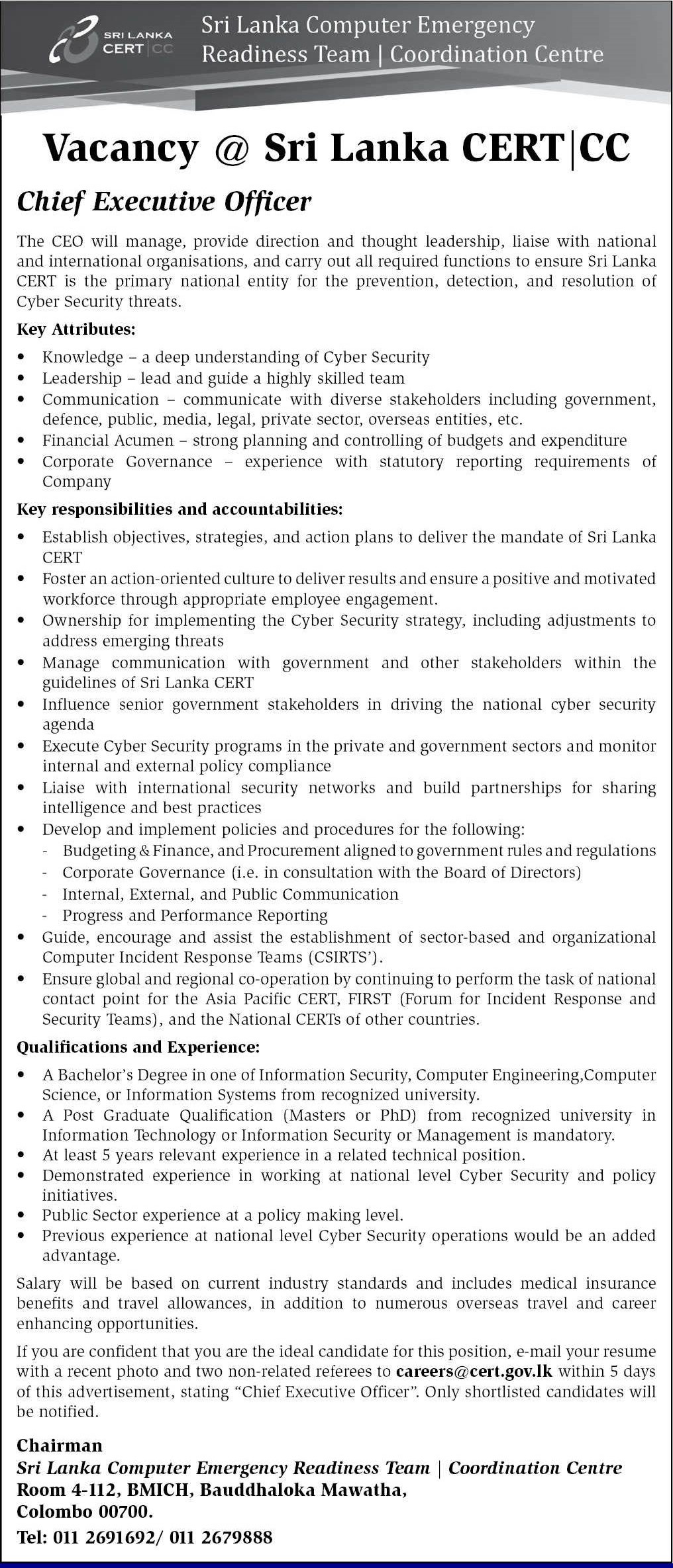Chief Executive Officer - Sri Lanka Computer Emergency Readiness Team