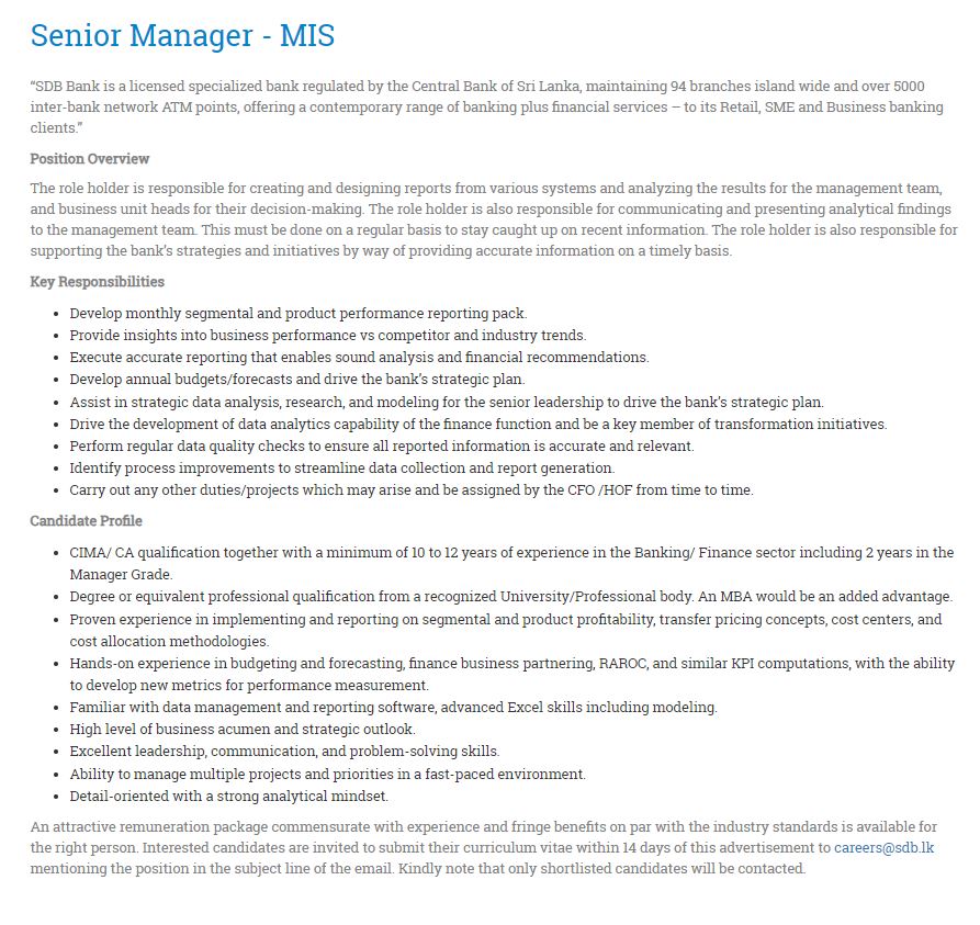 Senior Manager - Sanasa Development Bank