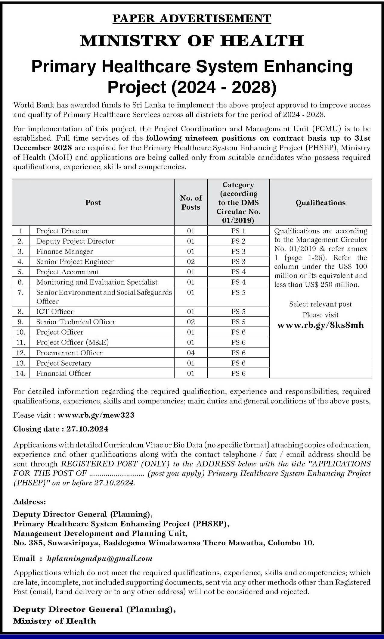 Project Director, Deputy Project Director, Financial Manager - Ministry of Health