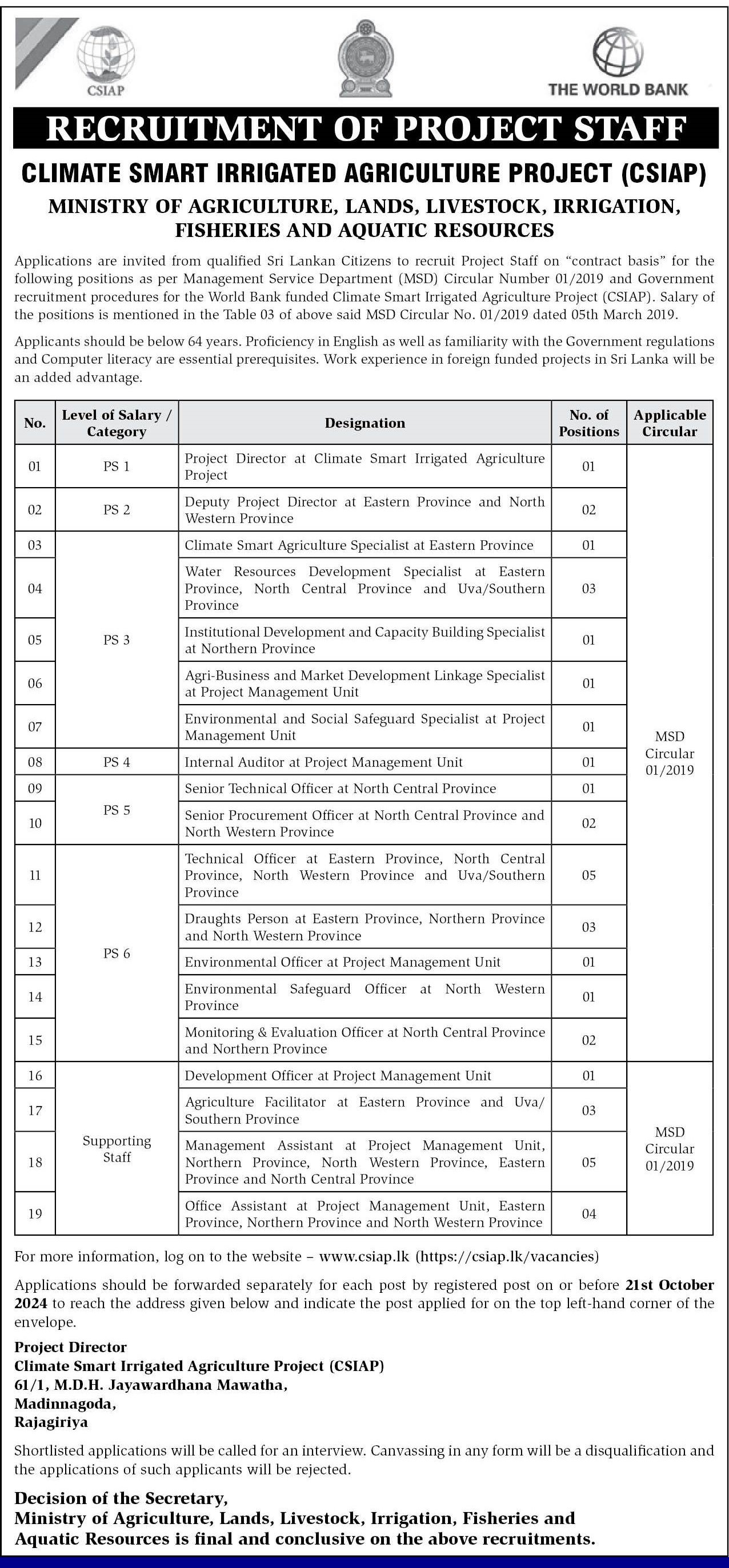 Project Director, Senior Technical Officer, Management Assistant - World Bank Group