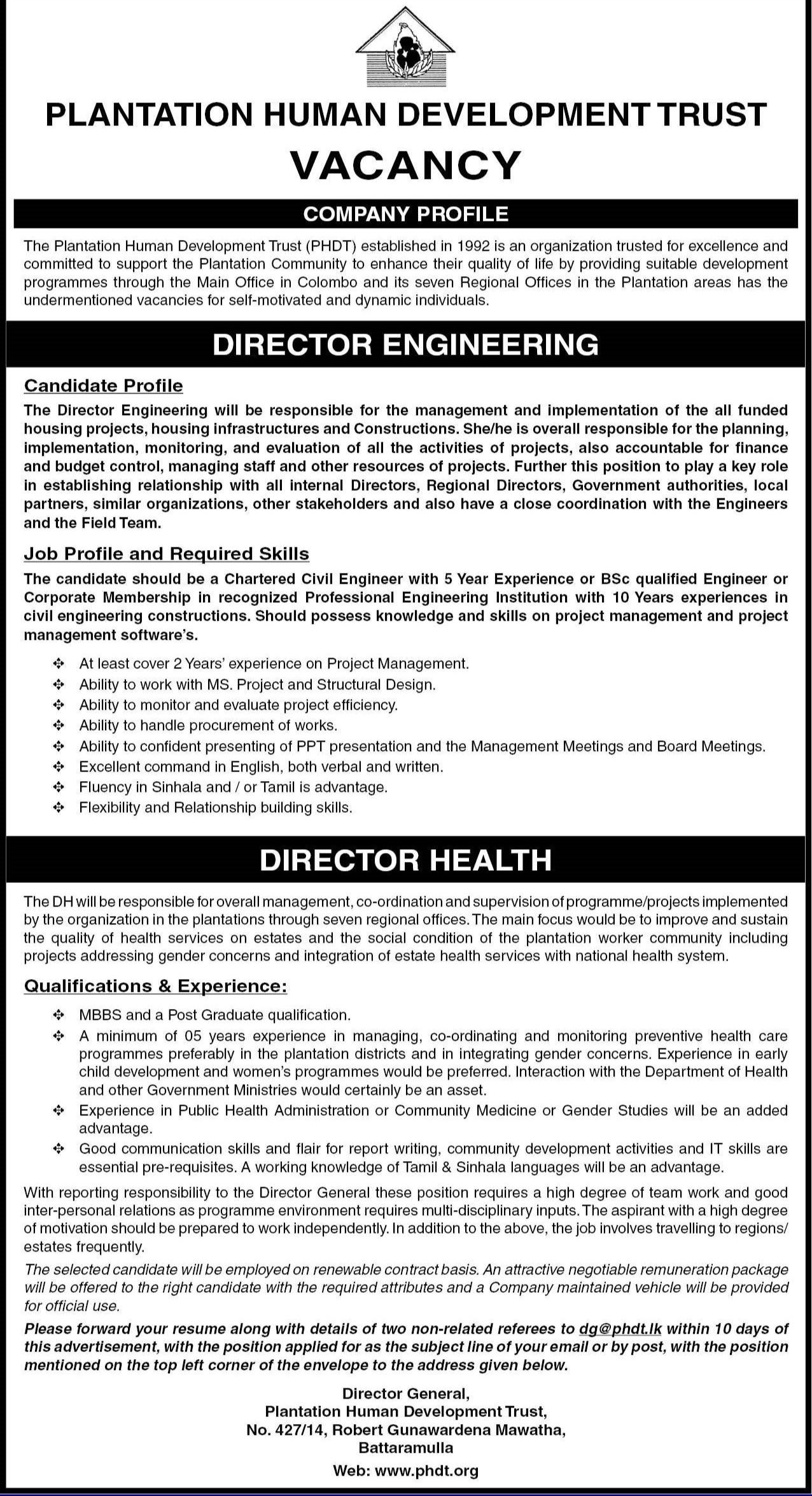 Director Engineering, Director Health - Plantation Human Development Trust