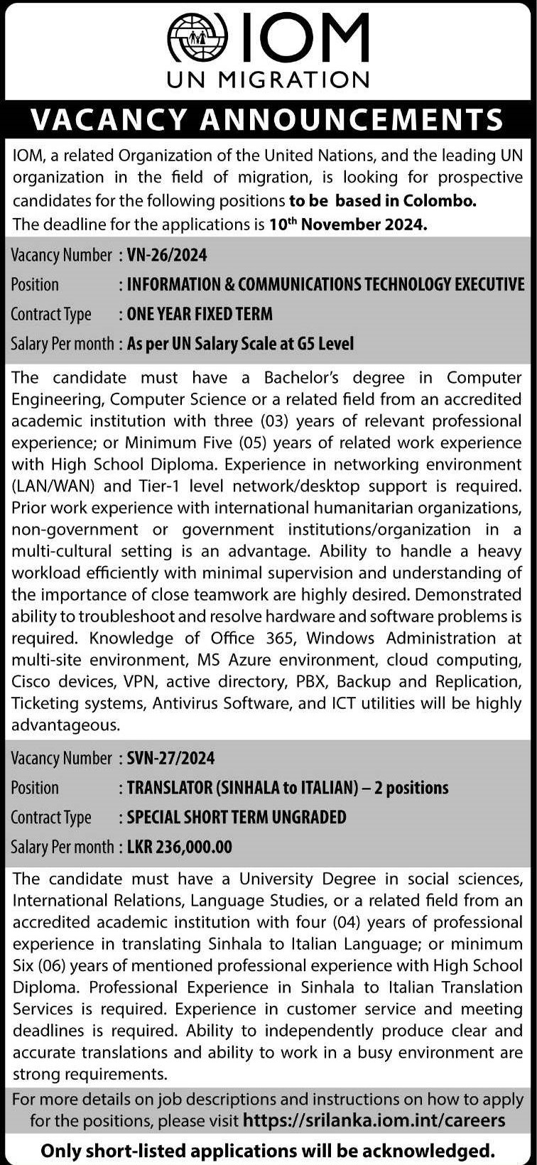 ICT Executive, Translator - International Organization for Migration