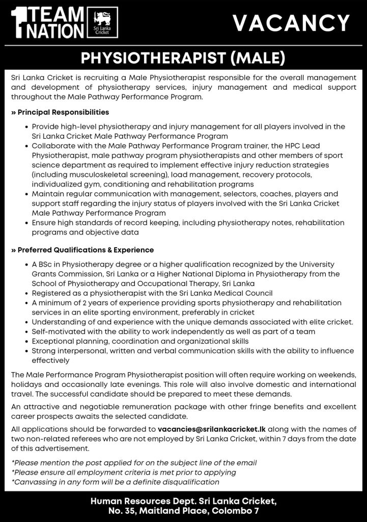 Physiotherapist - Sri Lanka Cricket