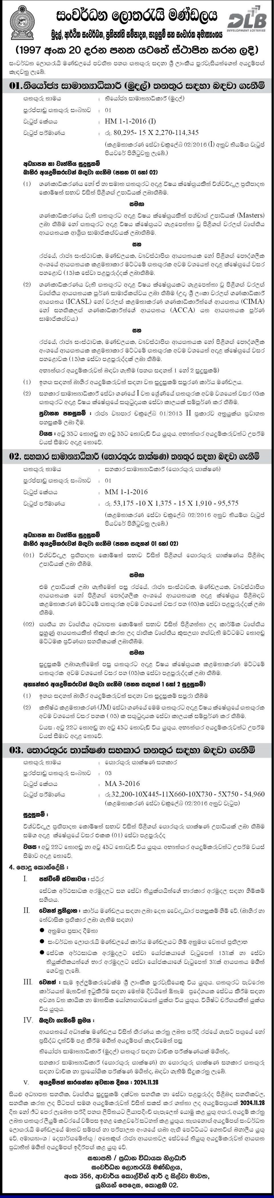Deputy General Manager, Assistant General Manager, IT Assistant - Development Lotteries Board