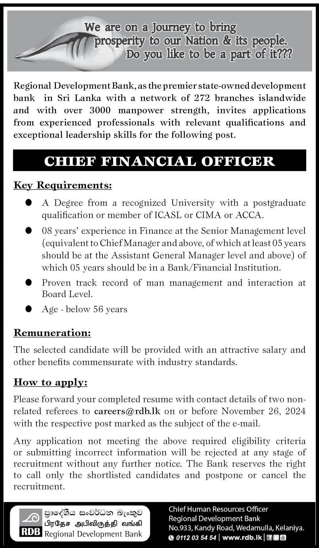 Chief Financial Officer - Regional Development Bank