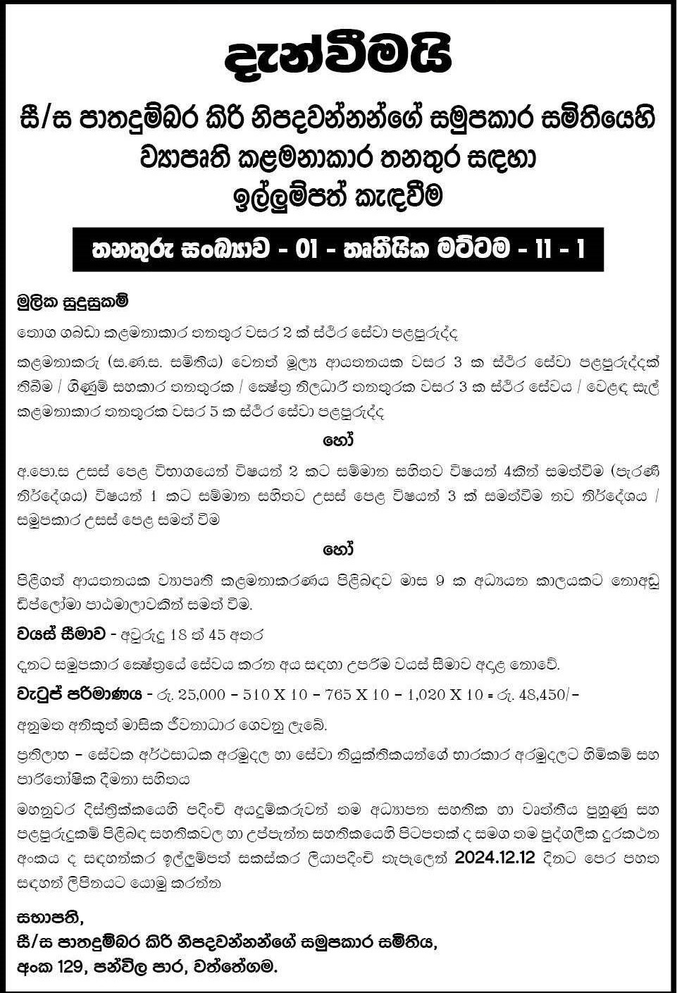 Project Manager - Pathadumbara Milk Production Cooperative Society