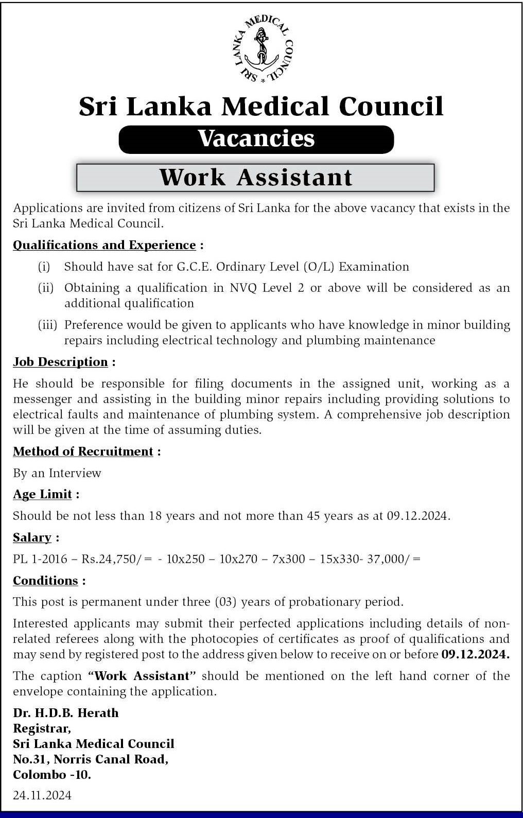 Work Assistant - Sri Lanka Medical Council