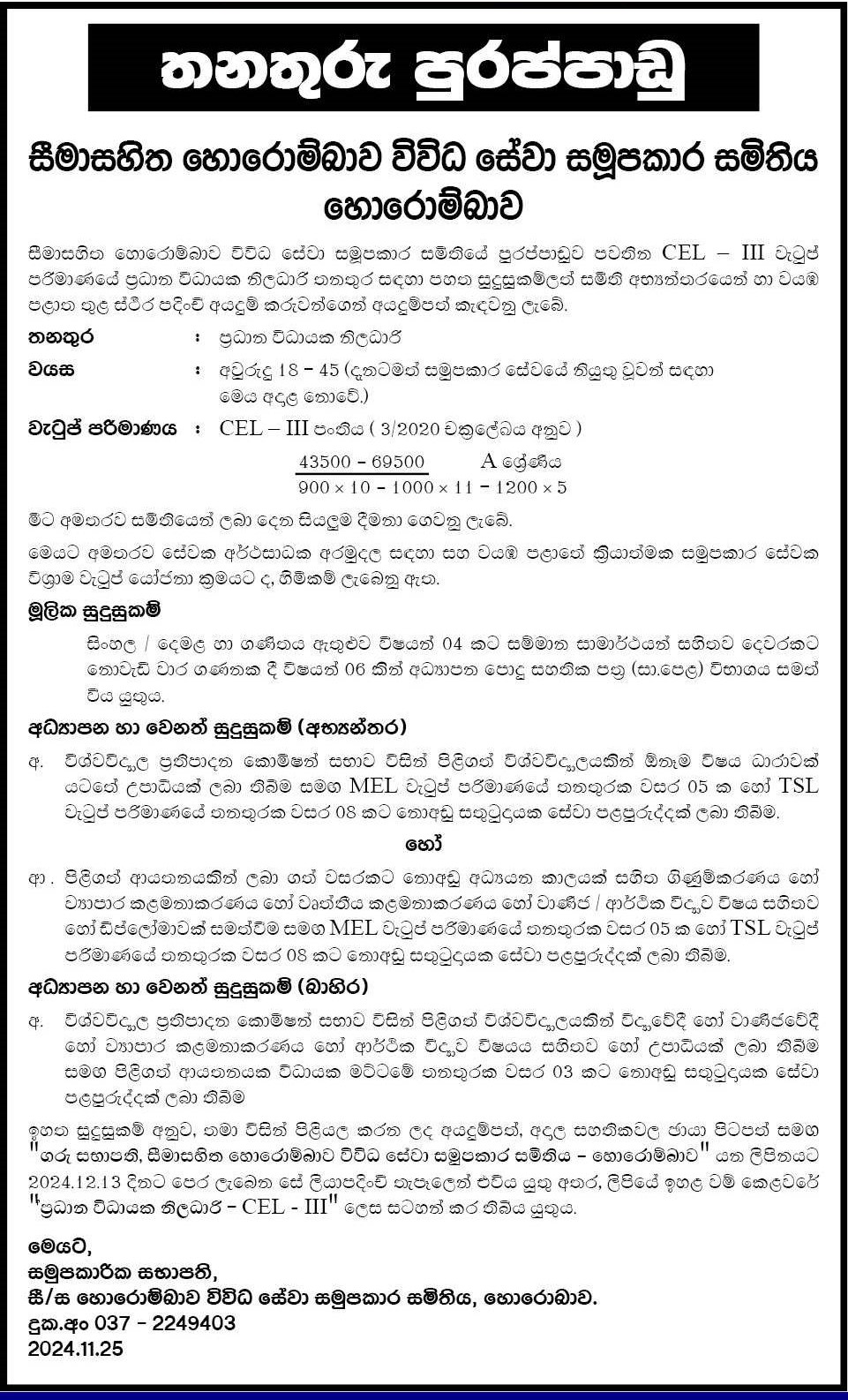 Chief Executive Officer - Horombawa Multi Purpose Cooperative Society Ltd