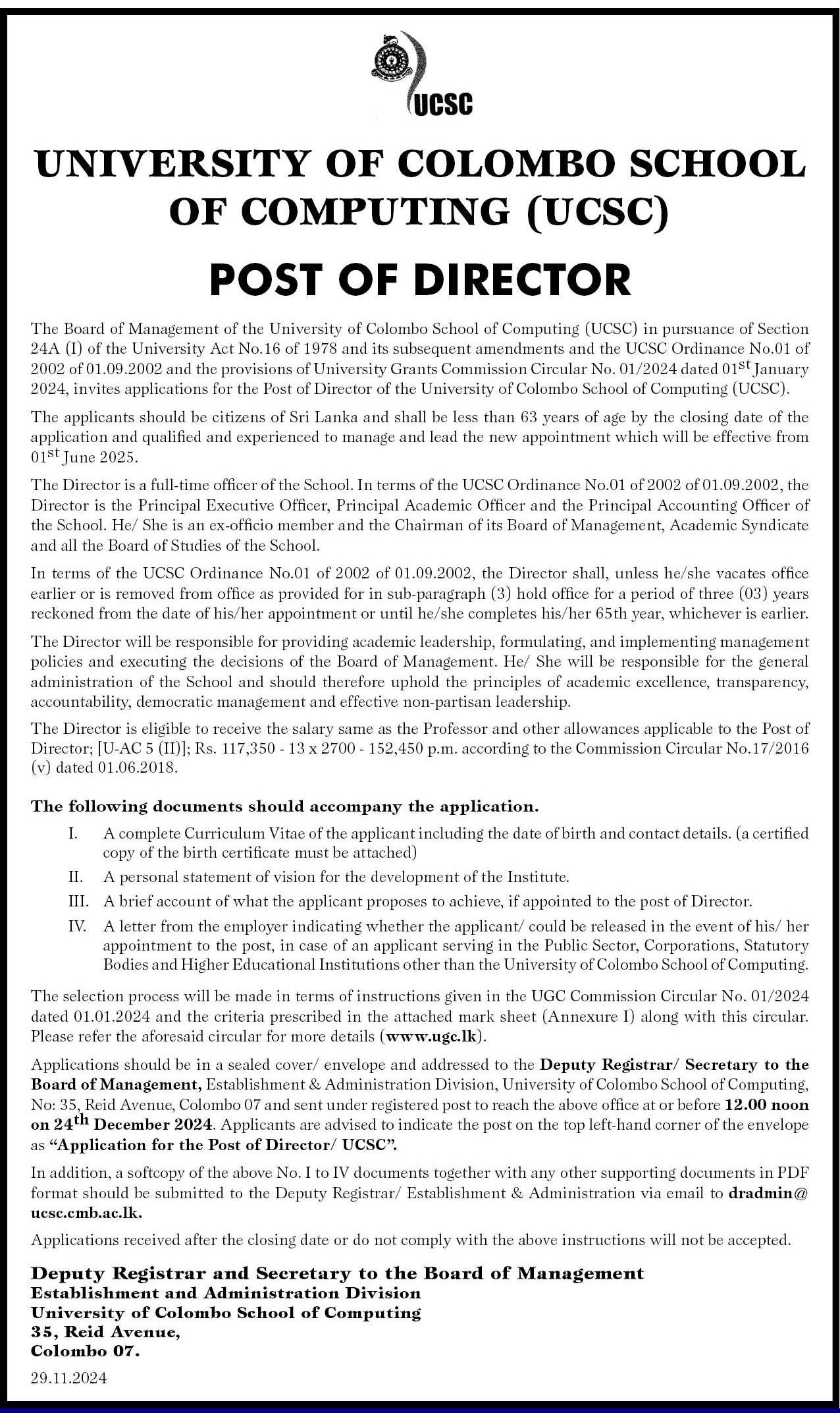 Director - University of Colombo School of Computing