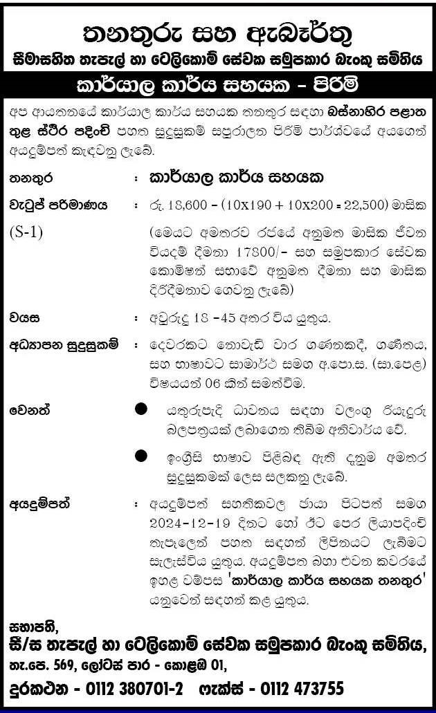 Office Assistant - Postal and Telecom Employees Co-operative Bank Society Limited