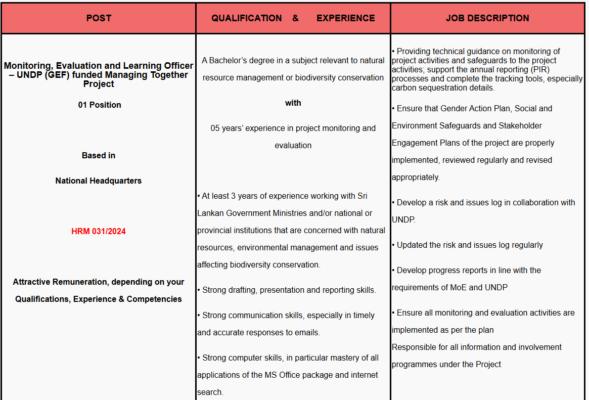 Monitoring, Evaluation and Learning Officer - Sri Lanka Red Cross Society