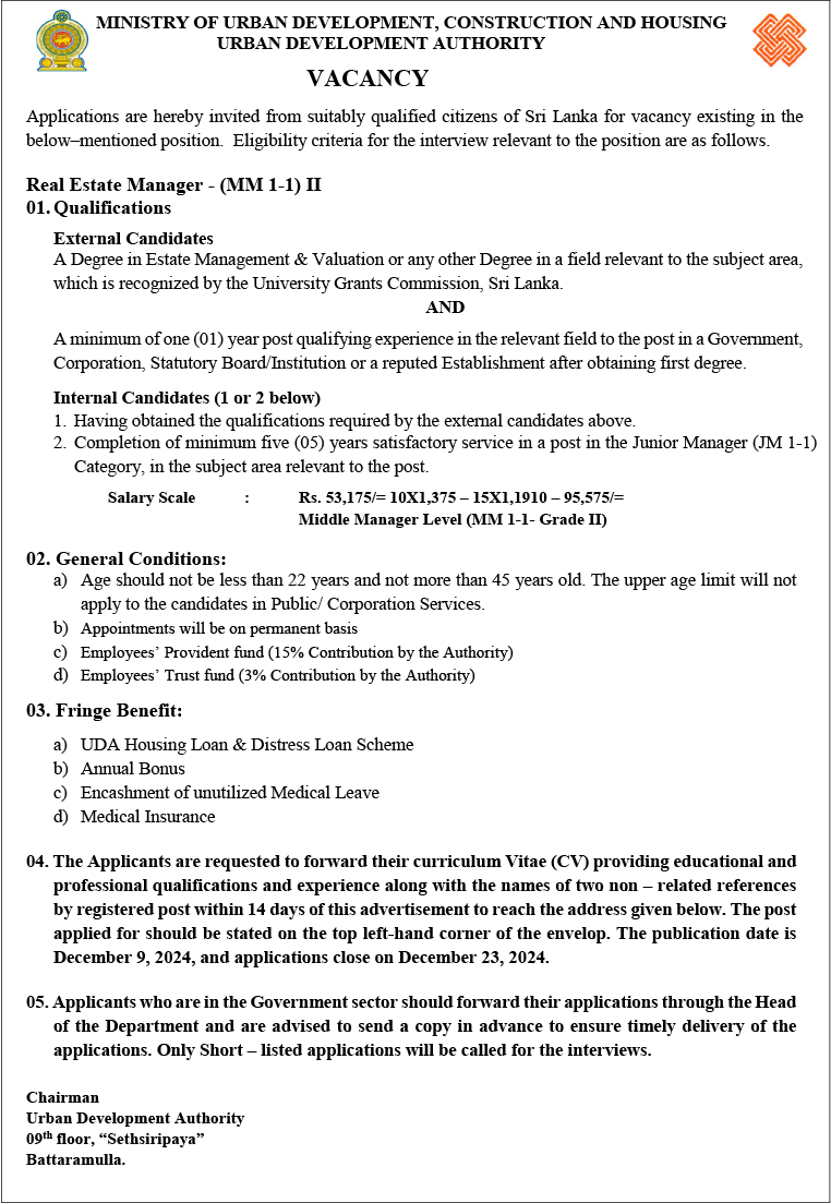 Real Estate Manager - Urban Development Authority
