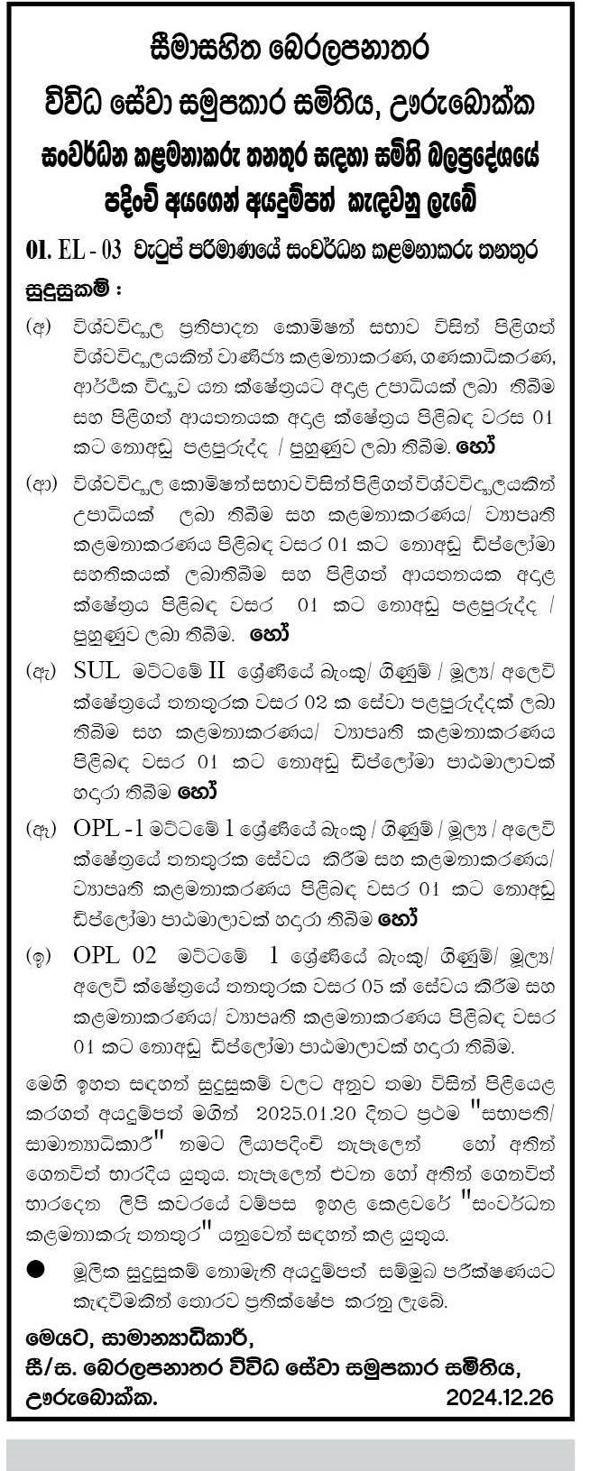 Development Manager - Beralapanathara Multi Purpose Co-operative society Ltd
