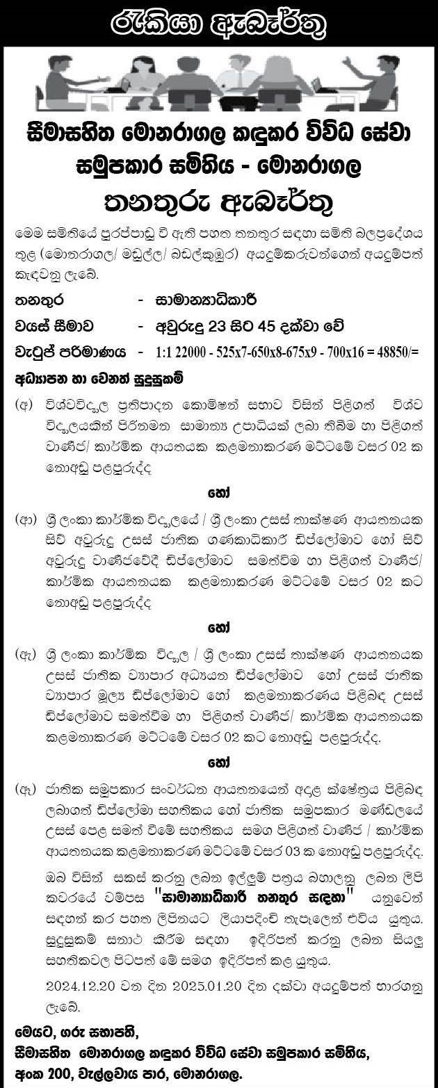 General Manager - Monaragala Hills Multipurpose Co-operative Society Limited