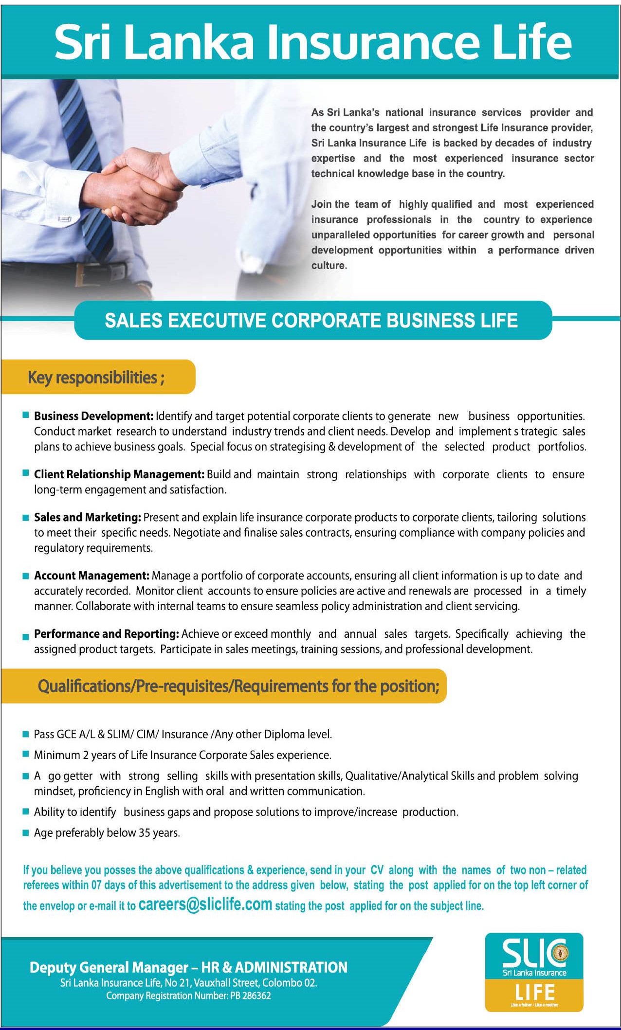 Sales Executive - Sri Lanka Insurance