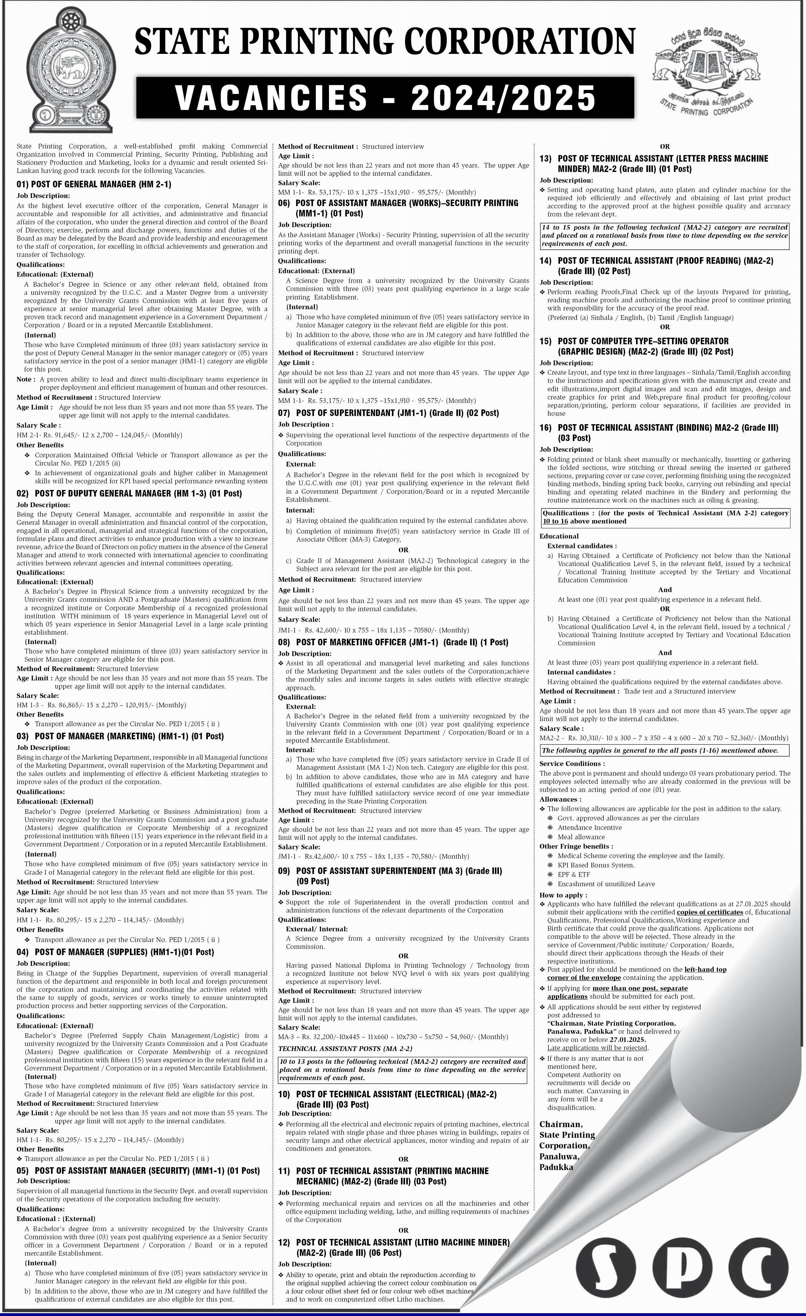 General Manager, Deputy General Manager, Manager - State Printing Corporation