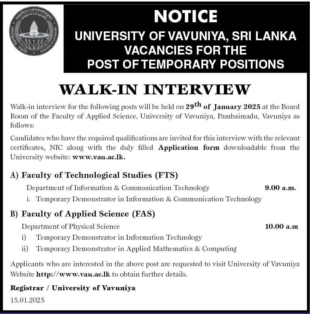 Demonstrator - University of Vavuniya