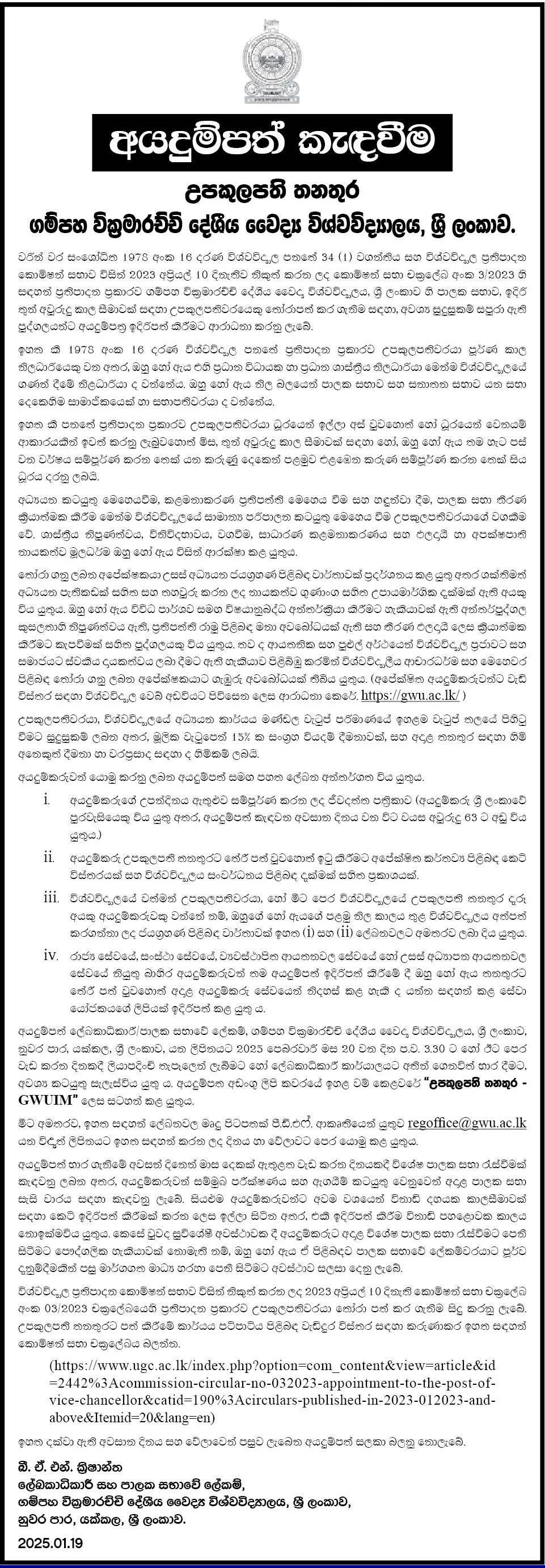 Vice Chancellor - Gampaha Wickramarachchi University of Indigenous Medicine