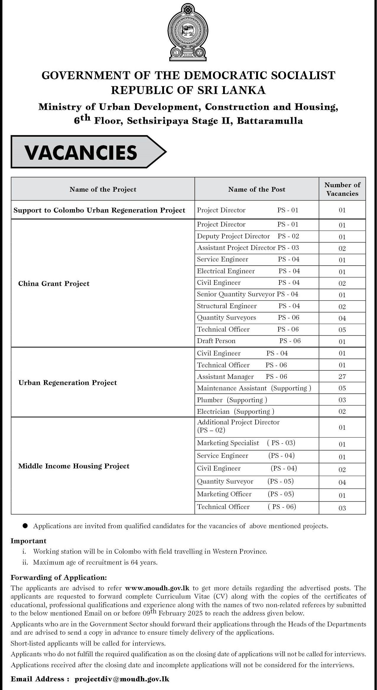 Project Director, Electrical Engineer, Civil Engineer - Ministry of Urban Development and Housing