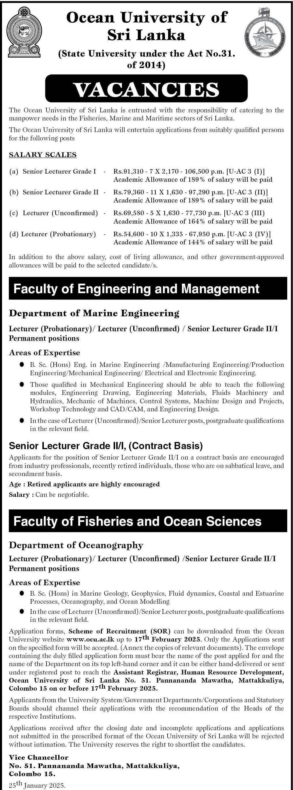 Senior Lecturer, Lecturer - Ocean University of Sri Lanka