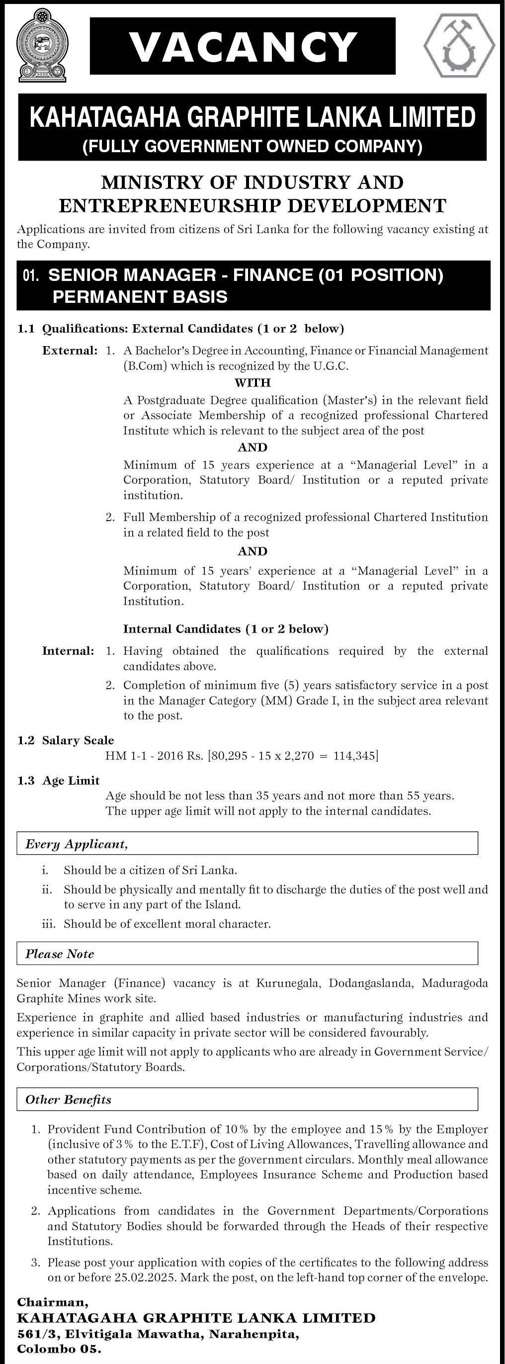 Senior Manager - Kahatagaha Graphite Lanka Ltd