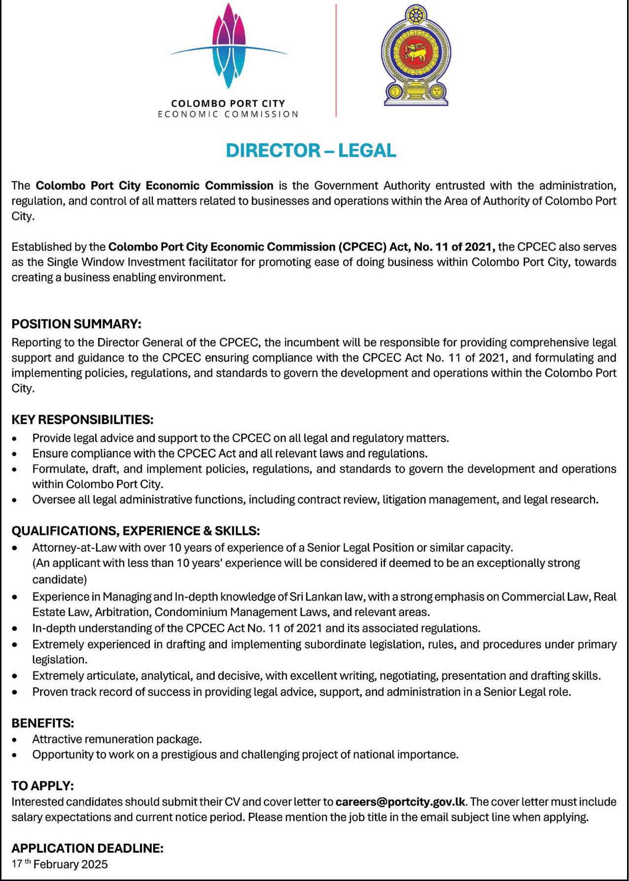 Director - Colombo Port City Economic Commision