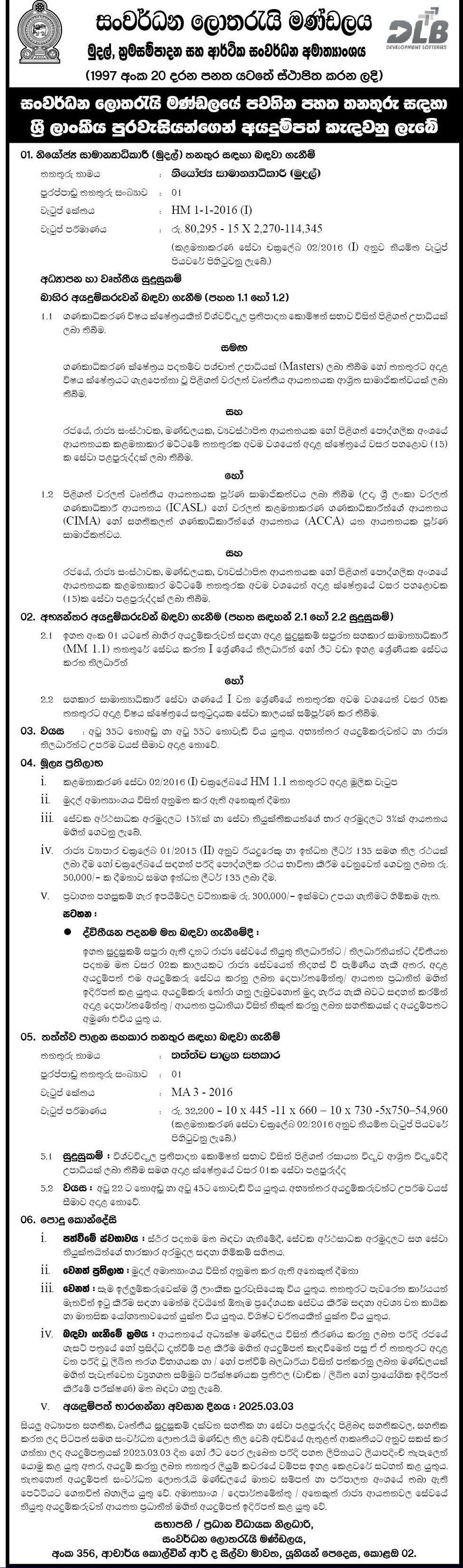 Deputy General Manager, Quality Control Assistant - Development Lotteries Board