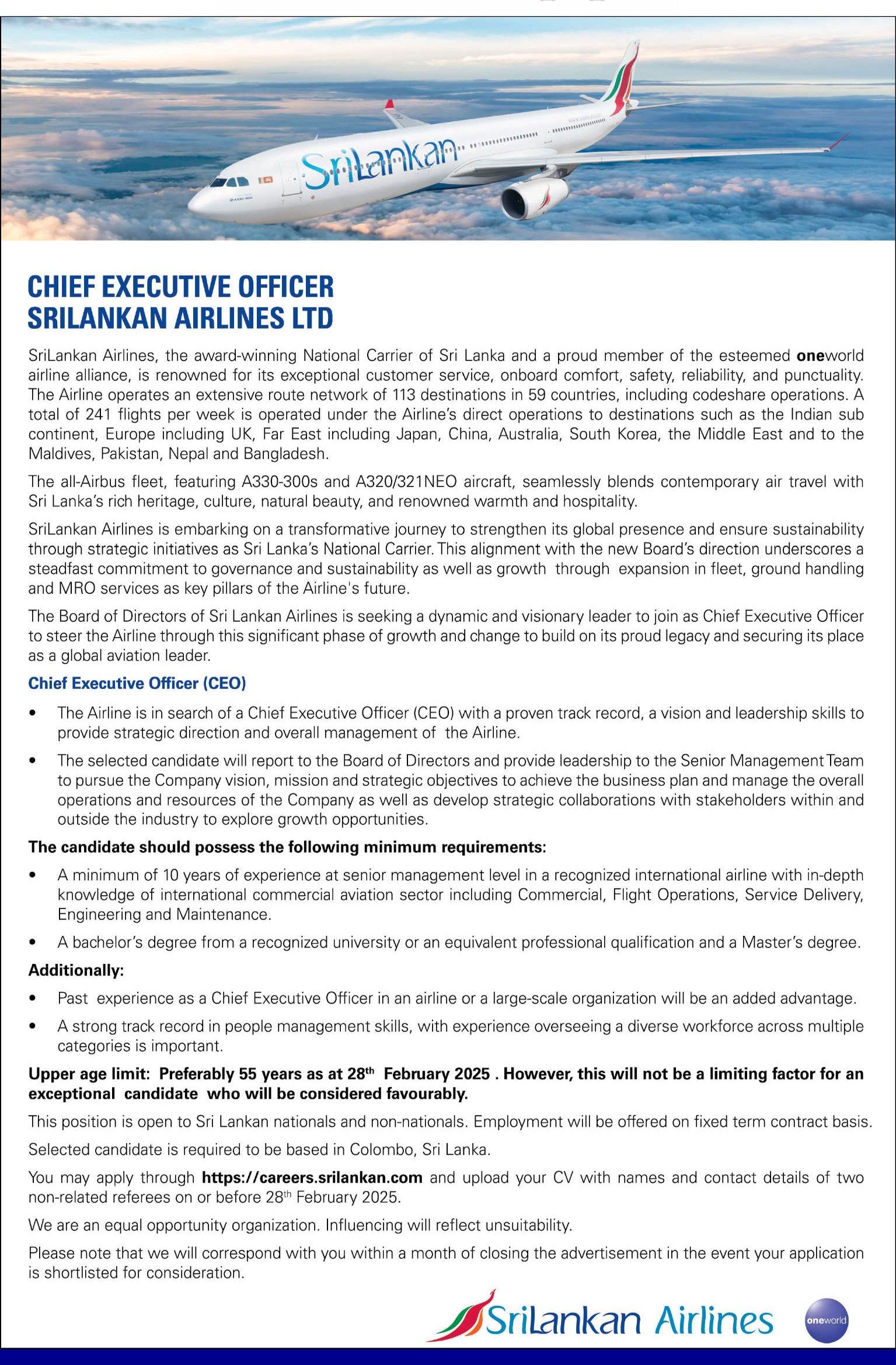 Chief Executive Officer - SriLankan Airlines