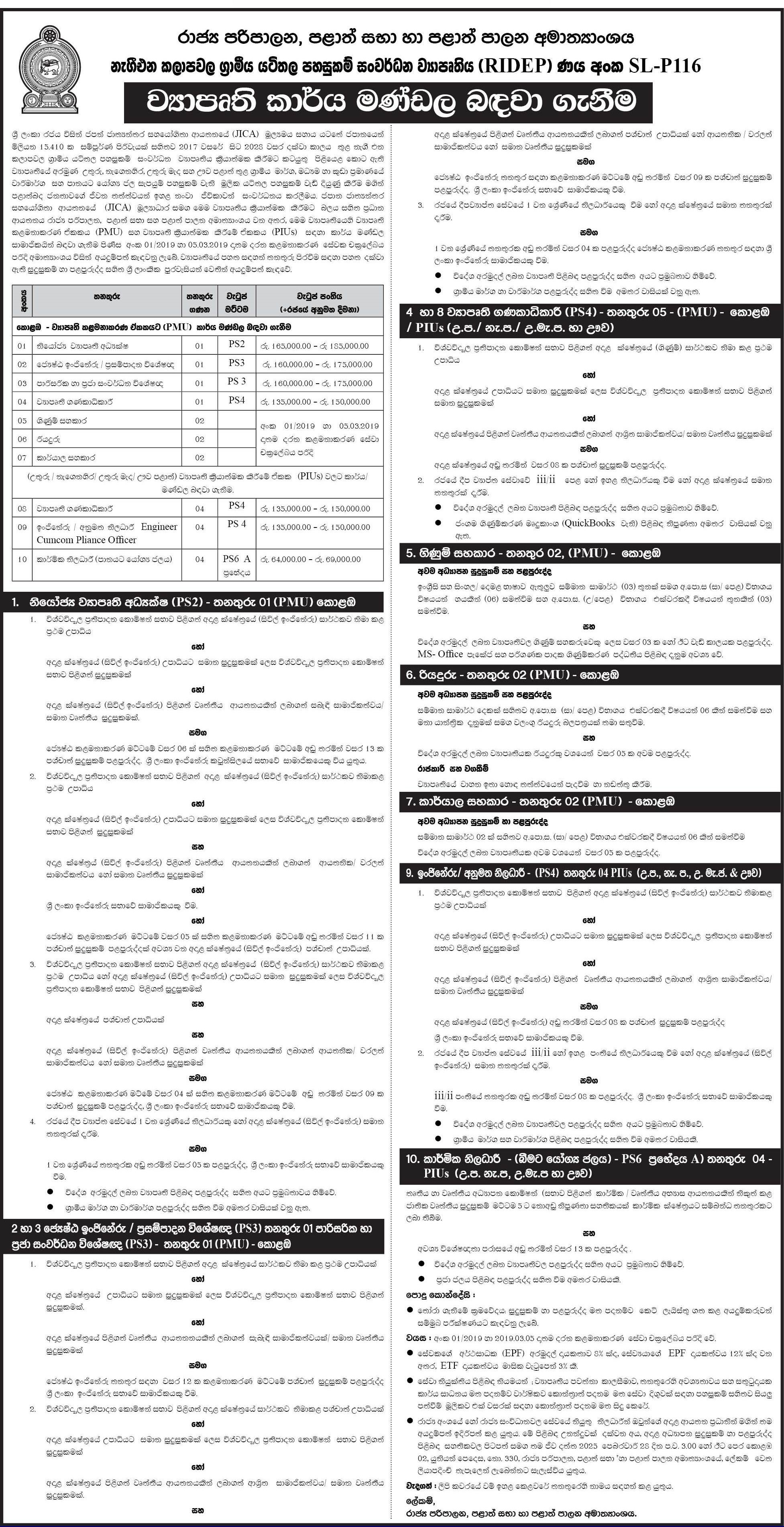 Deputy Project Director, Senior Engineer, Project Accountant - Ministry of Public Administration, Provincial Councils and Local Government