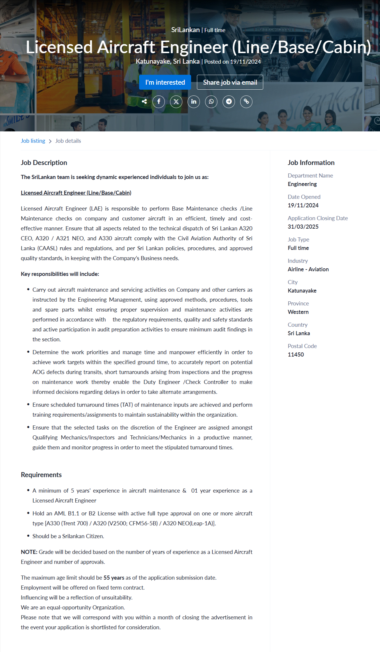 Licensed Aircraft Engineer - SriLankan Airlines