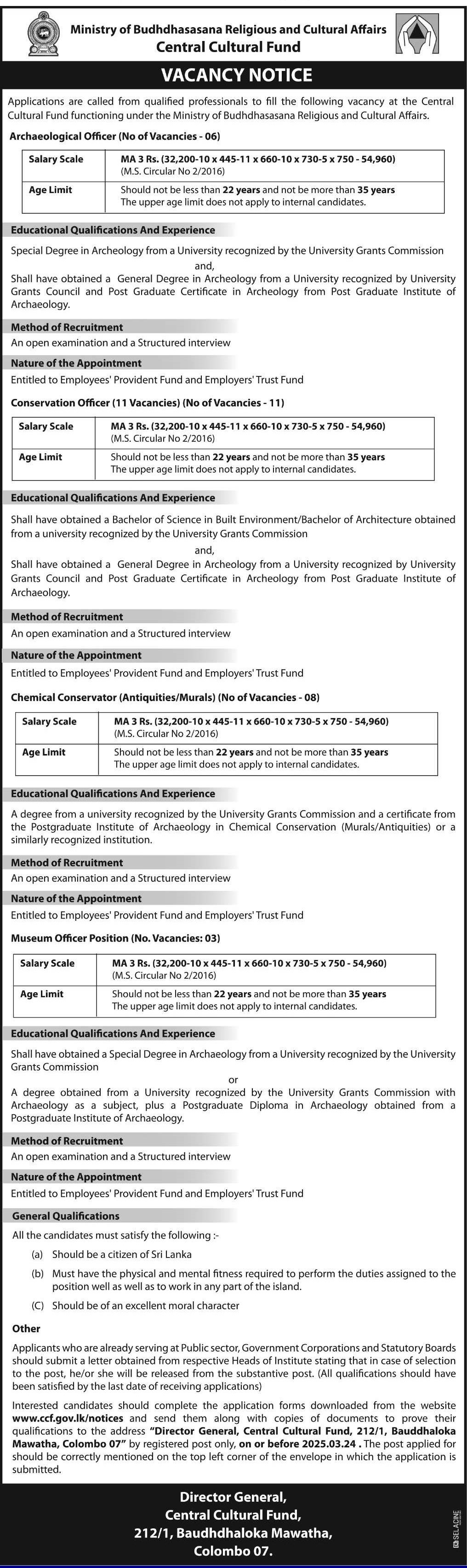 Archaeological Officer, Conservation Officer, Museum Officer - Central Cultural Fund