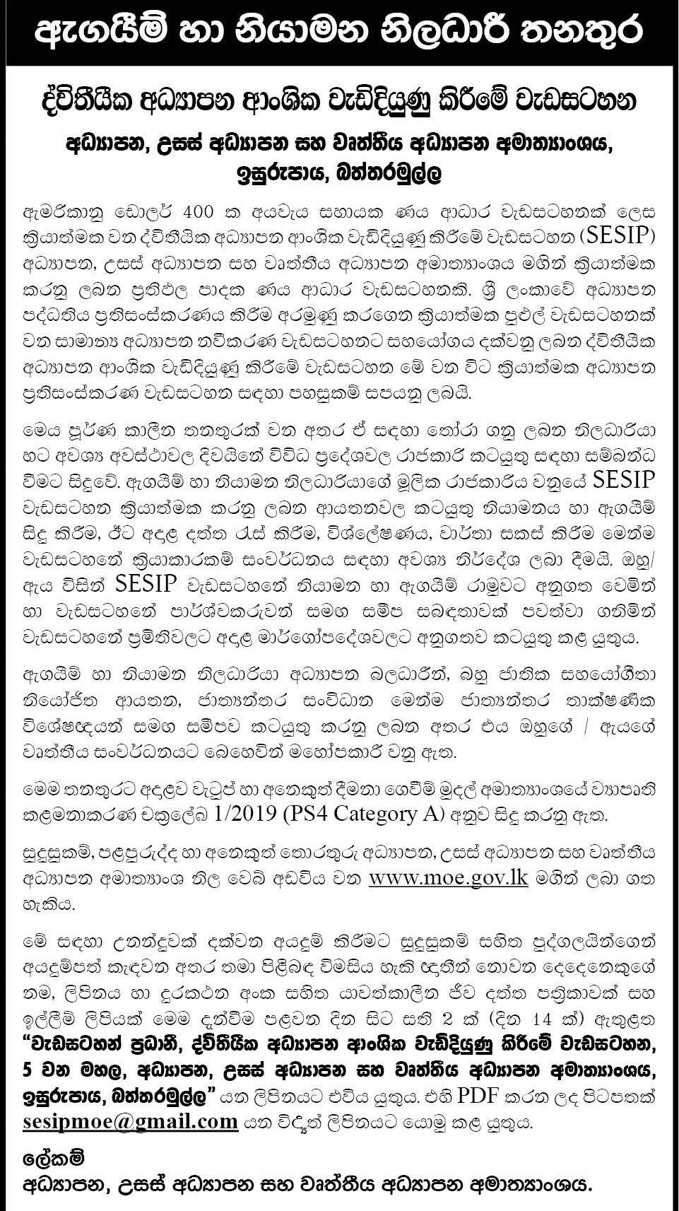 Monitoring and Evaluation Officer - Ministry of Education