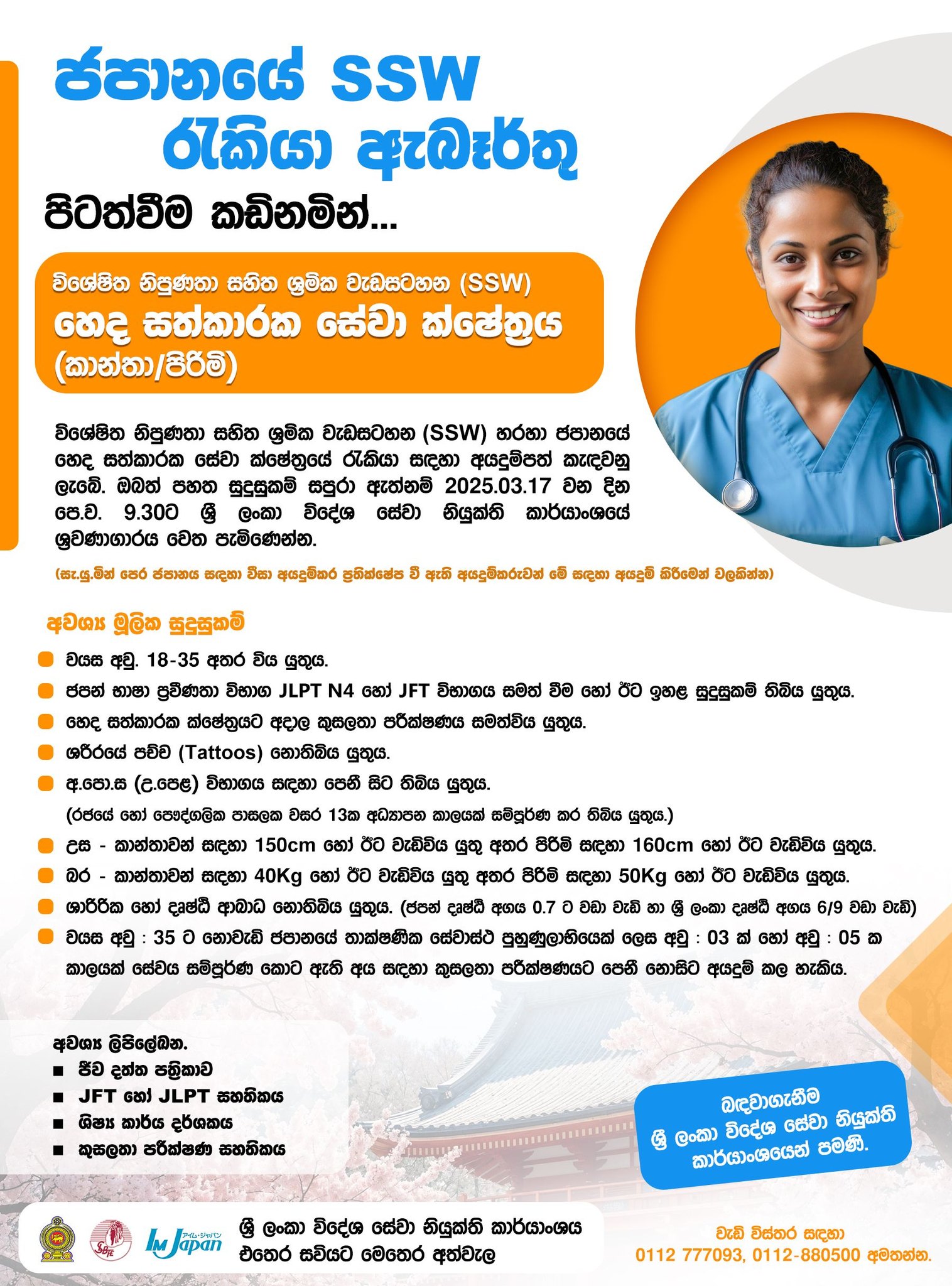 Nursing Care Sector (Japan) - Sri Lanka Bureau of Foreign Employment