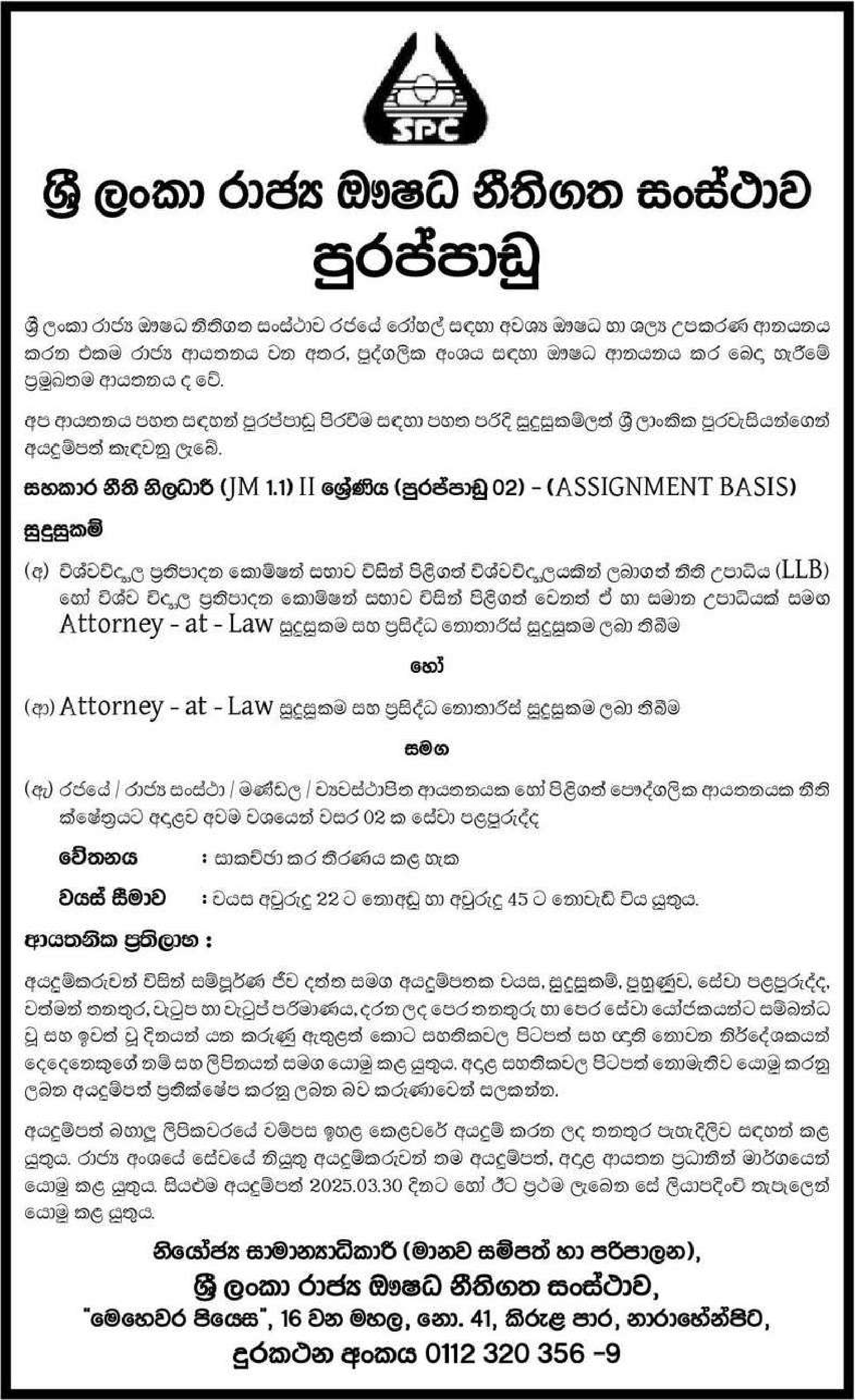 Assistant Legal Officer - State Pharmaceuticals Corporation of Sri Lanka