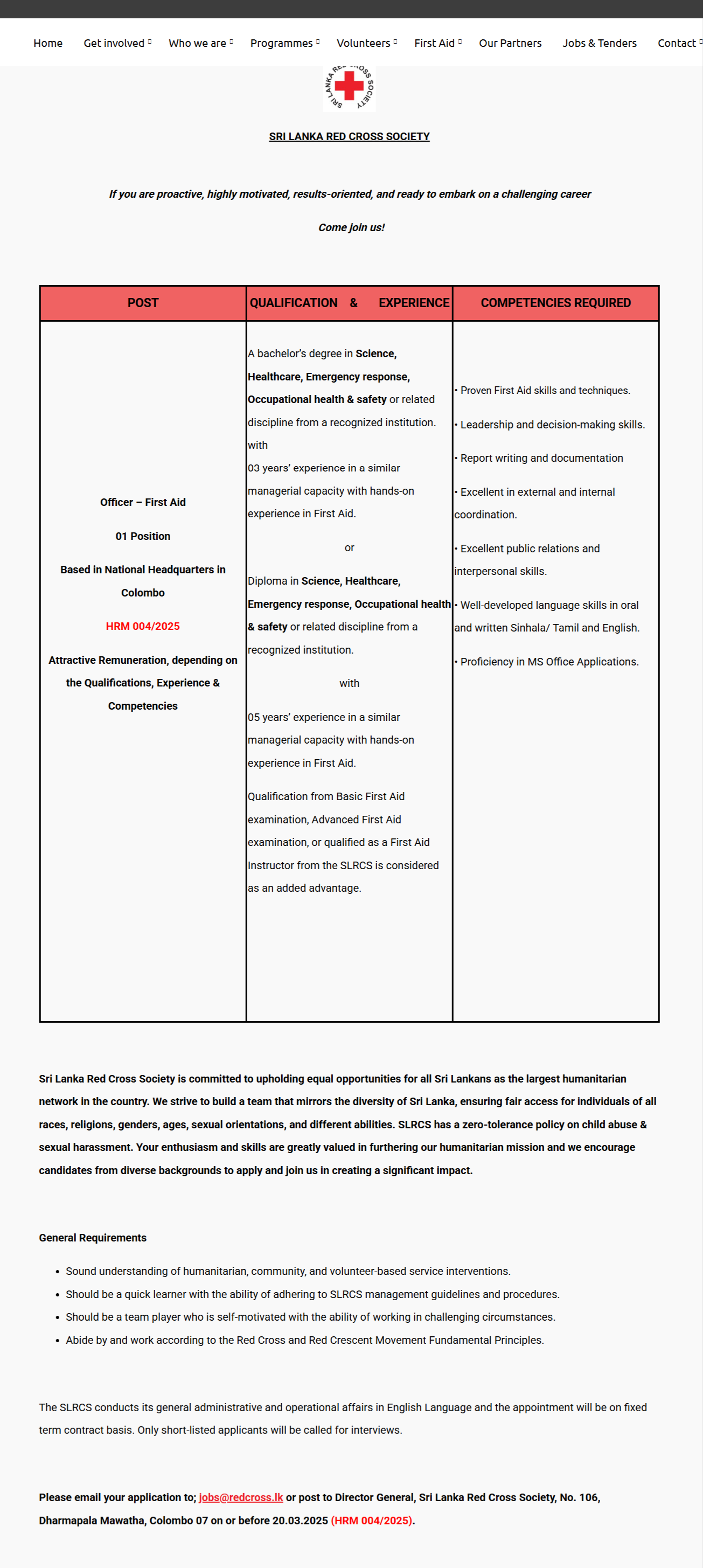 Officer - Sri Lanka Red Cross Society