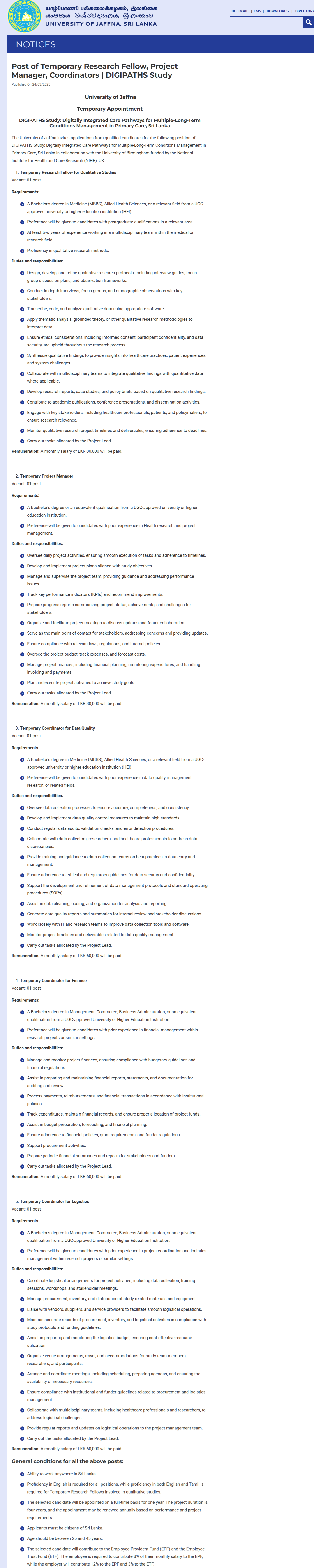 Research Fellow, Project Manager, Coordinator - University of Jaffna