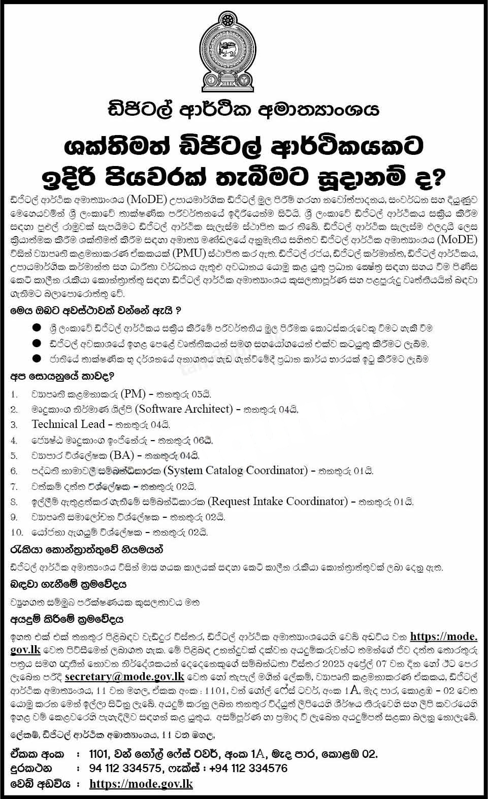 Project Manager, Software Architect,Technical Lead - Ministry of Digital Economy