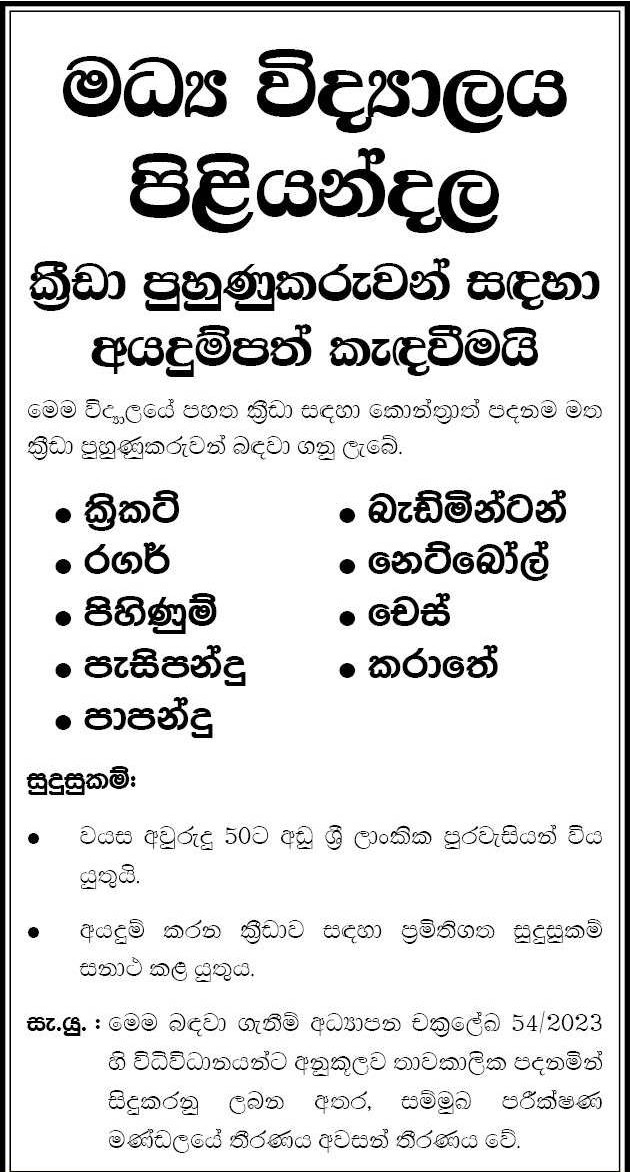 Sport Coach - Central College Piliyandala
