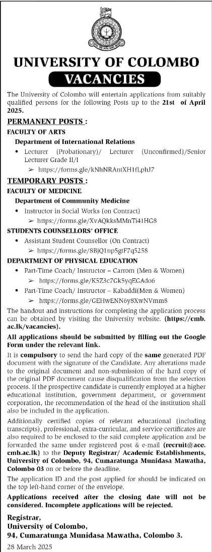 Senior Lecture, Lecturer, Coach, Instructor - University of Colombo