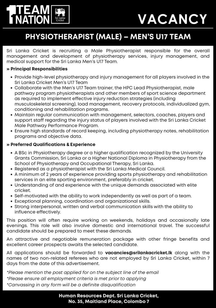 Physiotherapist - Sri Lanka Cricket