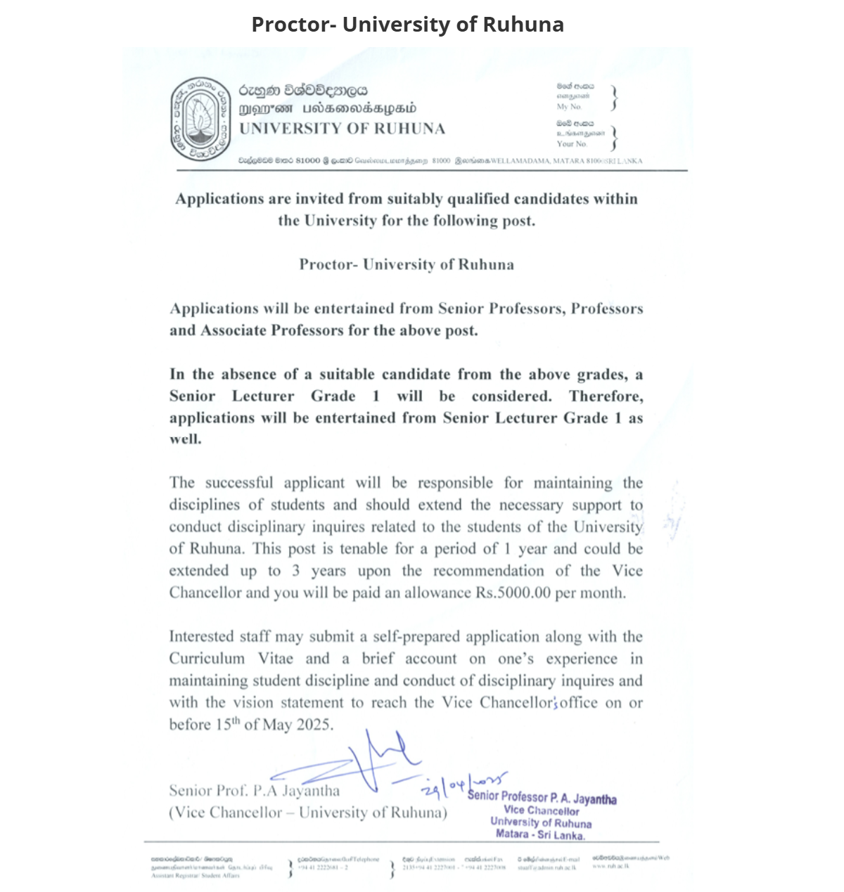 Proctor - University of Ruhuna
