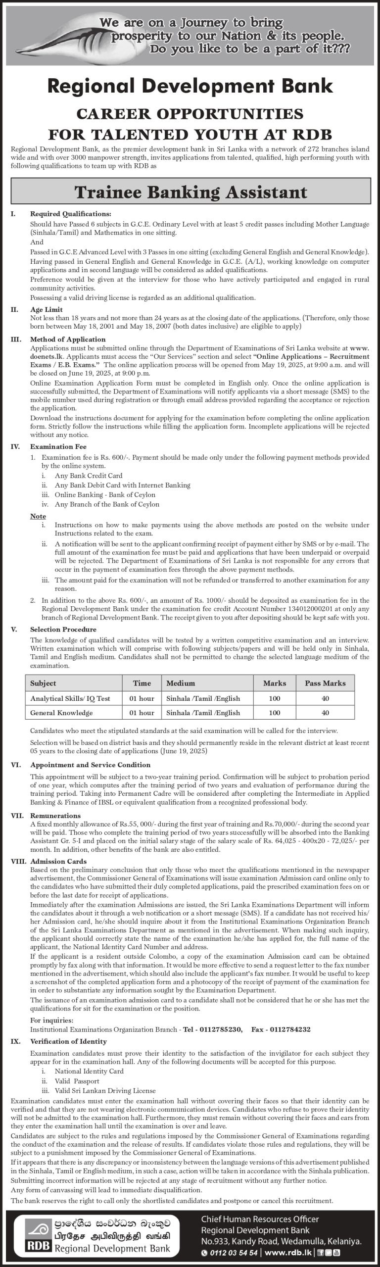 Trainee Banking Assistant - Regional Development Bank