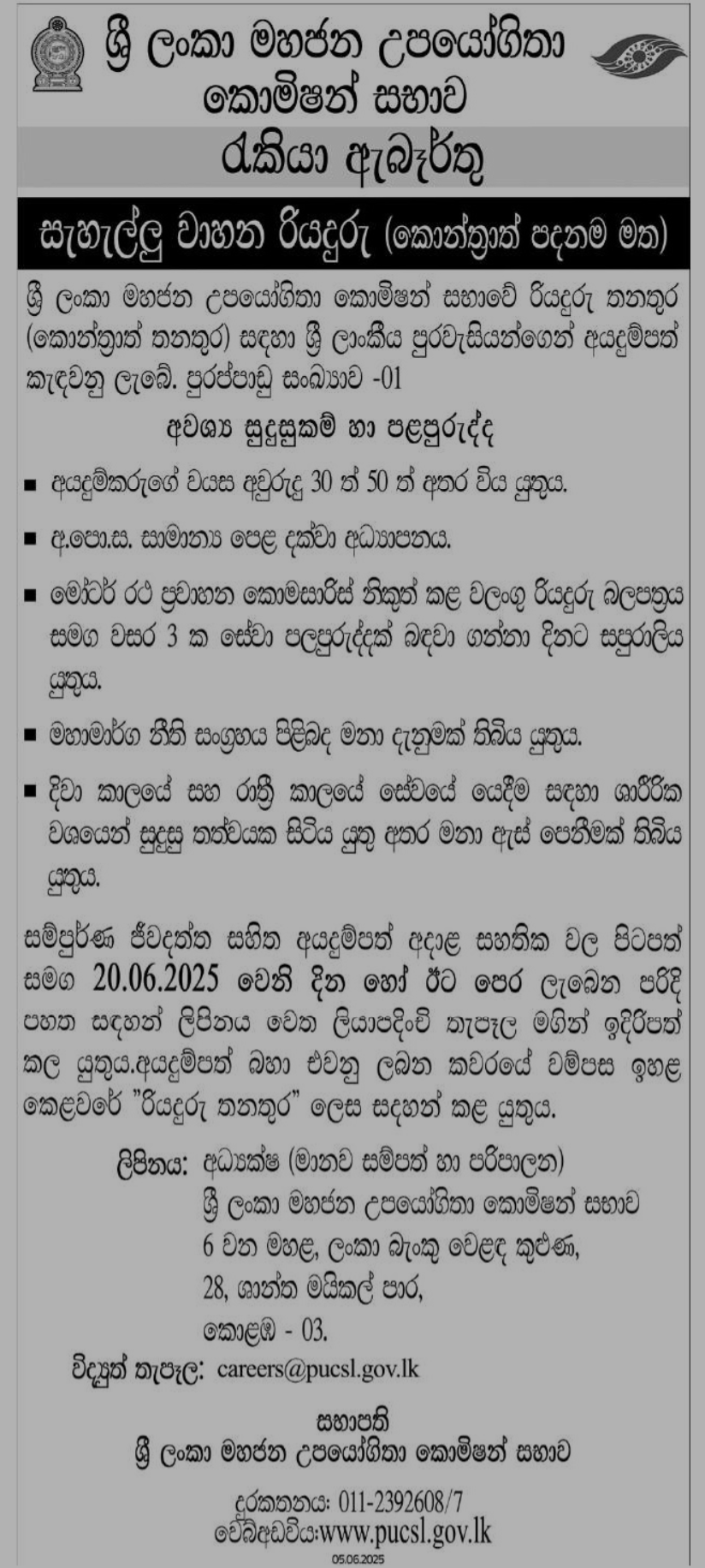 Light Vehicle Driver - Public Utilities Commission of Sri Lanka