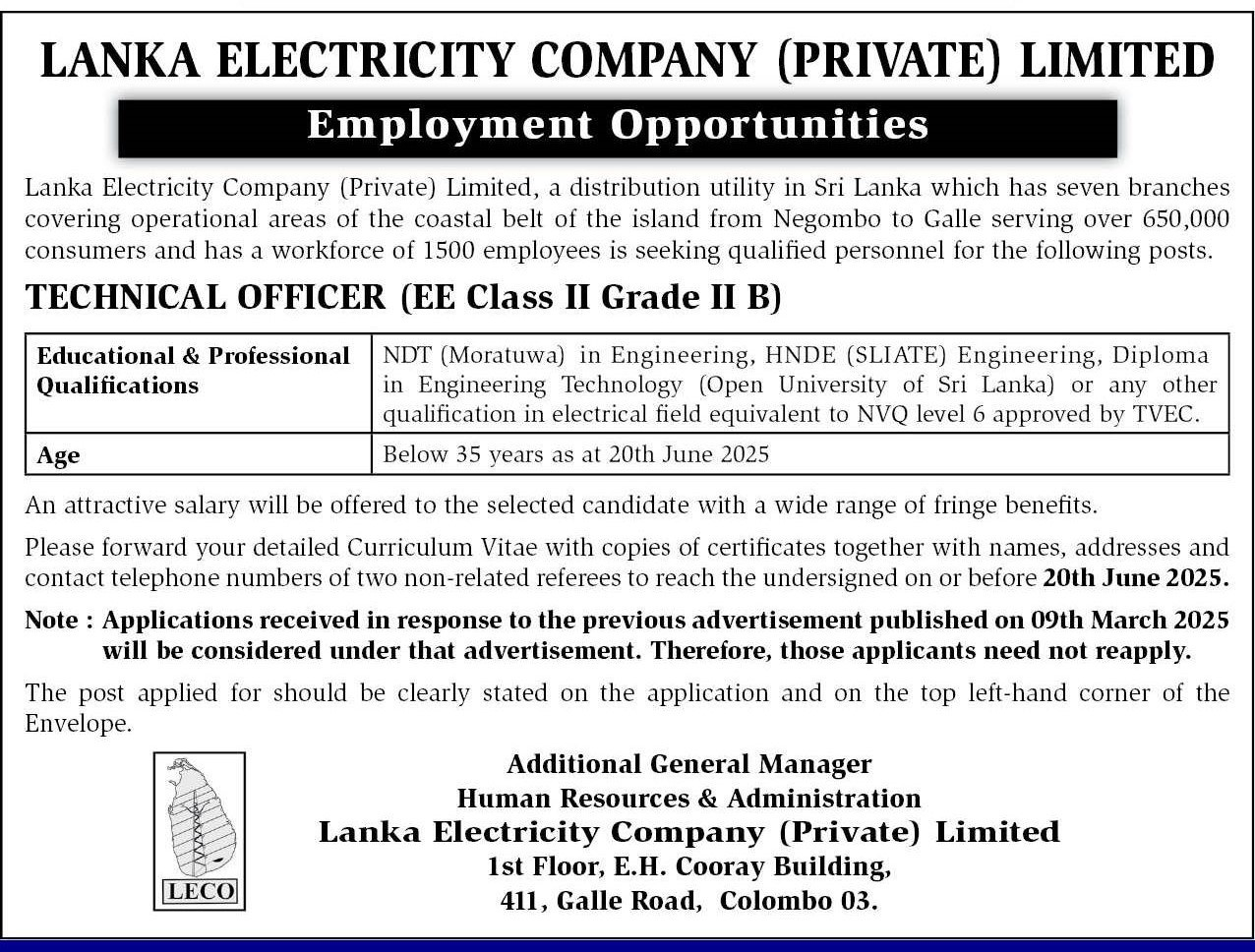 Technical Officer - Lanka Electricity Company (Private) Ltd