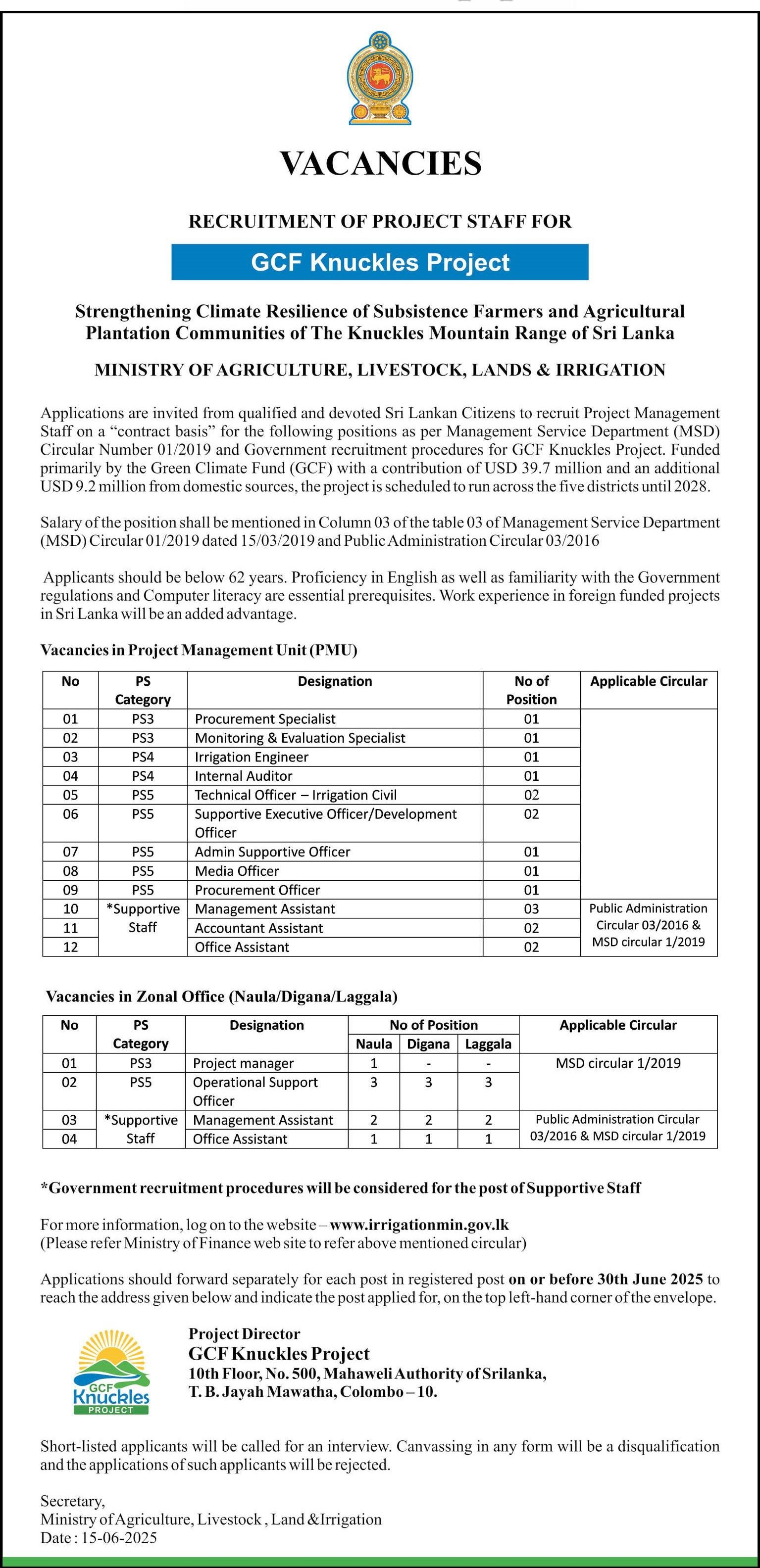 Procurement Specialist, Monitoring and Evaluation Specialist, Irrigation Engineer - Ministry of Agriculture